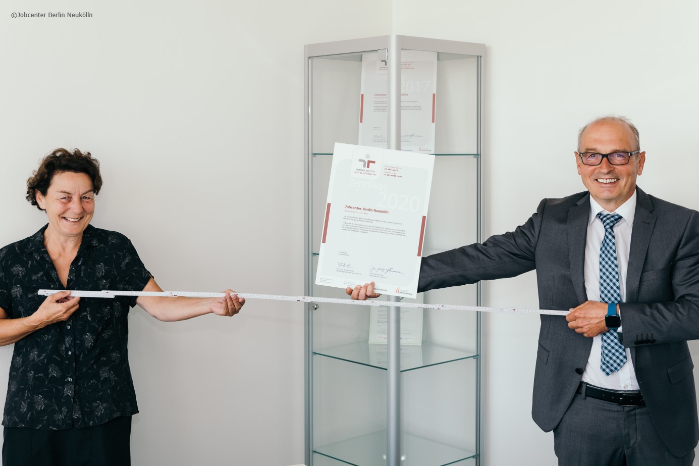 | Jörg Rosebrock und Dagmara Lomnicki (beide Bereich Personal) von der Sparkasse Bremen können sich über das 5. Zertifikat zum audit berufundfamilie freuen. (©Die Sparkasse Bremen AG) |